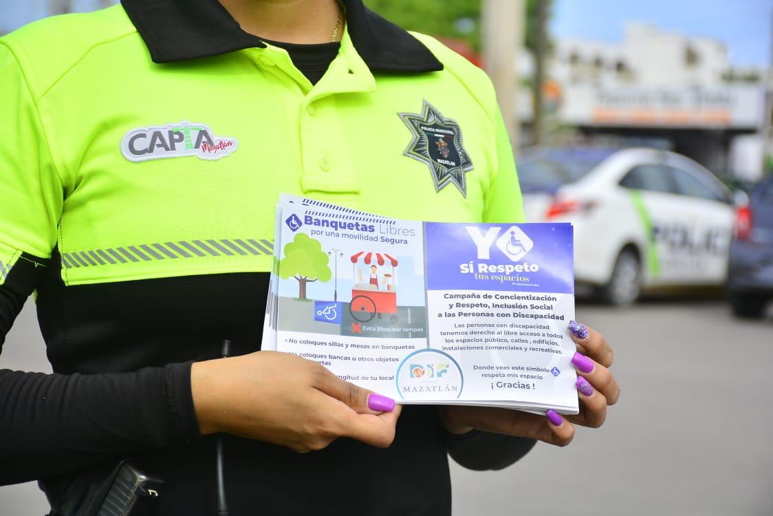La información compartida con los conductores es la inclusión social y el respeto a los espacios de las personas con discapacidad, para lo cual el Ayuntamiento ha emprendido campañas como «Banquetas libres», «Yo sí respeto tus espacios» y acciones como la colocación de piso podotáctil.