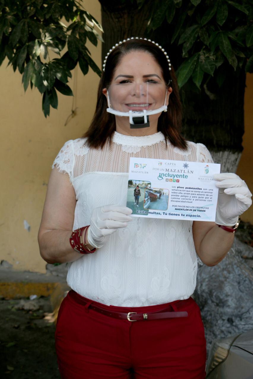 «Envío un mensaje de concientización a toda la sociedad de respetar todos los espacios azules del puerto, banquetas, rampas y así como también las líneas podotáctiles que se encuentran en la Avenida Rafael Buelna, es una señalética para que personas con debilidad visual puedan moverse con toda confianza y así fortalecer su independencia, porque como hemos dicho, Mazatlán es para todos», expresó.