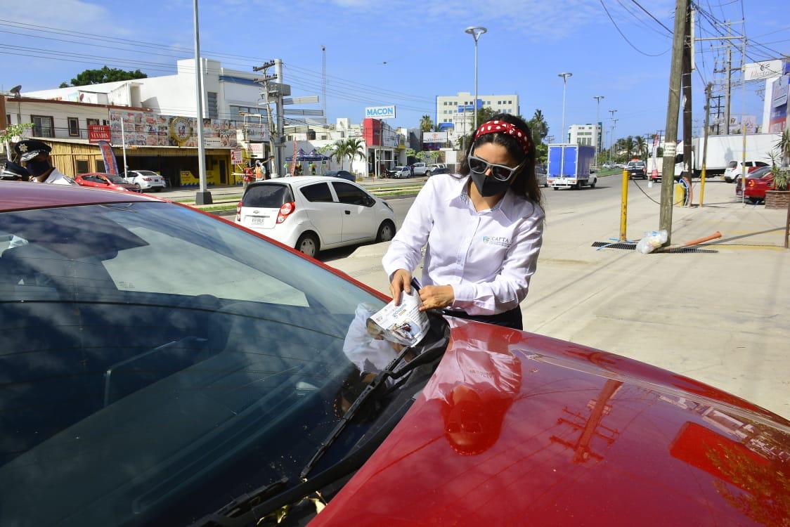 Personal de DIF Mazatlán, Tránsito Municipal y Capta, lleva a cabo una jornada de volanteo en la Avenida Rafael Buelna