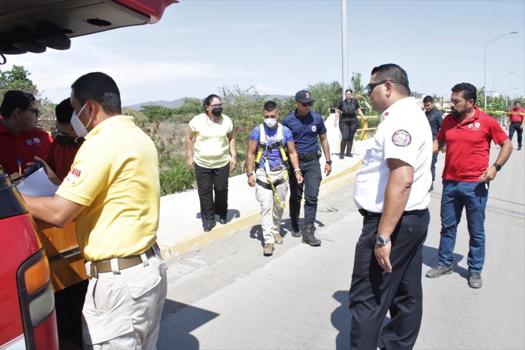 La alerta sobre una persona con intención de lanzarse al vacío se lanzó poco después de la tres de la tarde, y los elementos de la Secretaría de Seguridad Pública, Protección Civil Municipal y Estatal, Uneprevif, de Tránsito, Policía Turística, Cruz Roja, Bomberos Veteranos Mazatlán, Bomberos Veteranos Villa Unión, Immujer, Sistema DIF y C4 Mazatlán que participaron en el taller, pusieron en práctica los conocimientos adquiridos o actualizados.