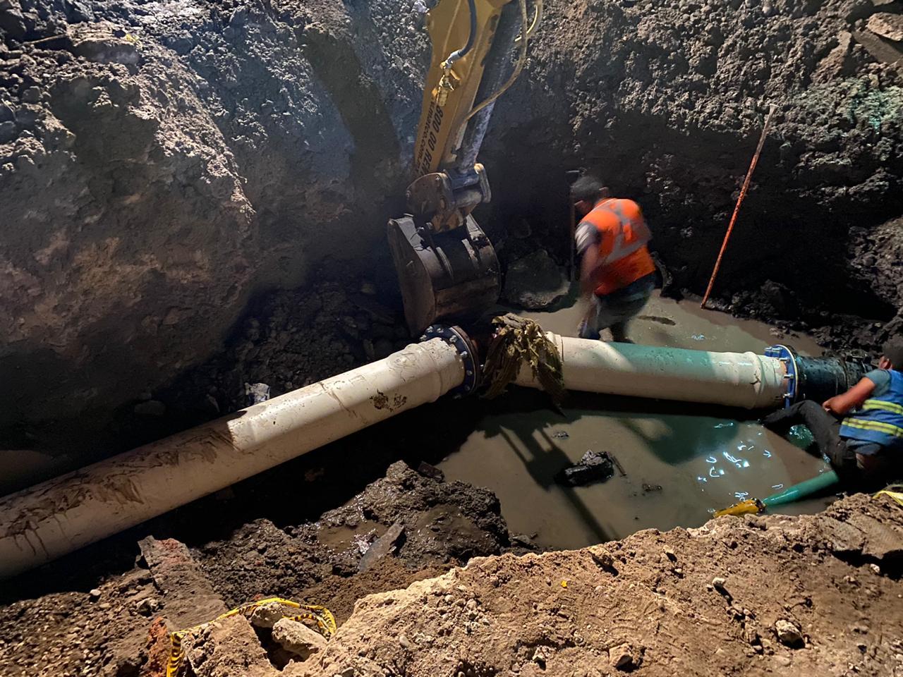 El funcionario municipal destacó que al terminar los trabajos se hizo la apertura de válvulas y paulatinamente se irá restableciendo el servicio en toda la zona de irrigación que depende de esta importante línea, que son más de 23 asentamientos, entre ellos la Zona Dorada.