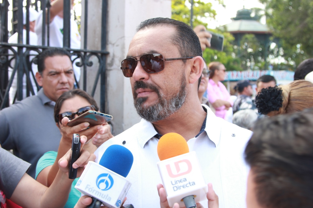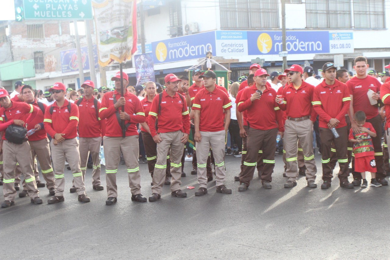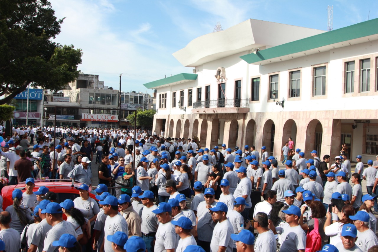 En representación del alcalde de Mazatlán, Luis Guillermo Benítez Torres, el secretario del Ayuntamiento, José de Jesús Flores Segura, acompañó a los líderes sindicales en el recorrido que inició en el cruce de Gutiérrez Nájera y Juan Carrasco y culminó en la plazuela República.