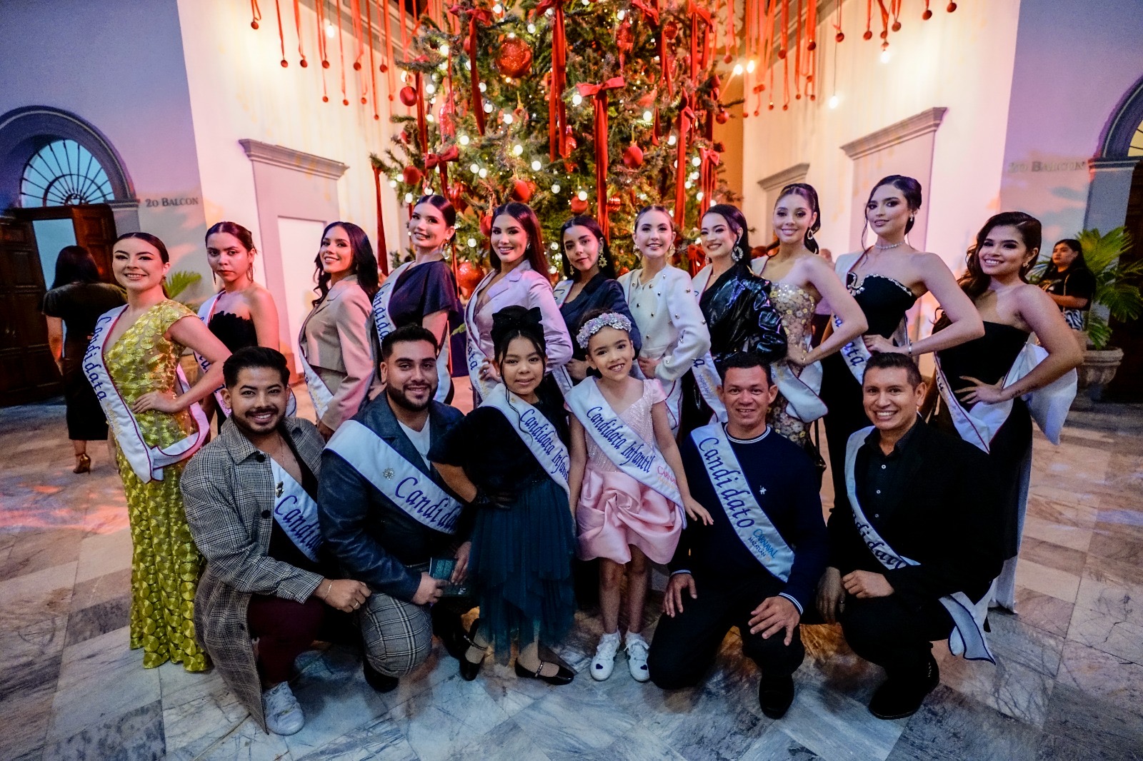 En esta fiesta carnavalera no podía faltar la belleza de las candidatas a la máxima corona del Carnaval de Mazatlán: Lesly Desireé Acosta Ibarra (porra verde); Mariana Valverde Osuna (azul), Samantha Paulina Godoy Bastidas (blanco), Sandra Cecilia Tirado Cobos (plata), Mariani Itzel Franco Benítez (negro), Grecia Fernanda Rodríguez Ramos (amarillo), Fernanda Lizbeth Velazco Zatarain (naranja) Desiré Velázquez Ayón (rosa), Lucero Lizárraga Salcido (morado), María Fernanda Ramírez Rios (azul cielo), Evelyn María Pineda Medina (dorado) y Melissa Cuevas Aispuro (rojo).