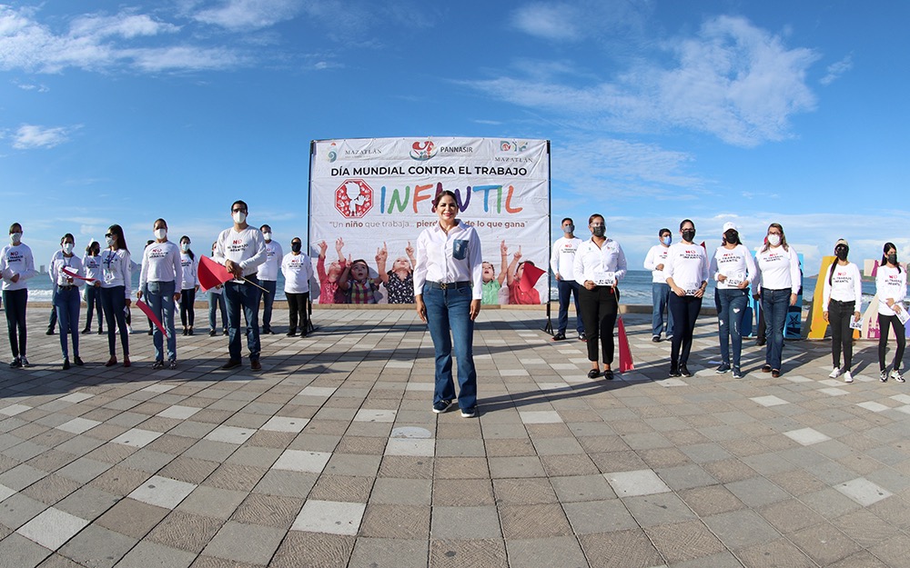 La Presidenta de DIF Mazatlán, Gabriela Peña Chico, encabezó un evento simbólico de continuidad a la Campaña “Di no al trabajo infantil”, la cual busca sensibilizar a la sociedad mazatleca e inculcar la cultura de la denuncia ante este tema que afecta a la niñez.