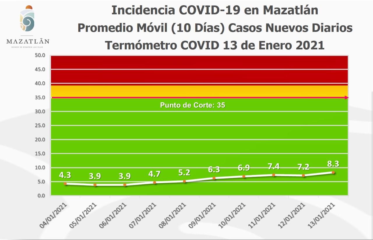 El Termómetro de Casos Activos Diarios, con el que el Ayuntamiento observa la prevalencia de la pandemia en la ciudad, registró hoy 36 pacientes promedio de los 10 últimos días.