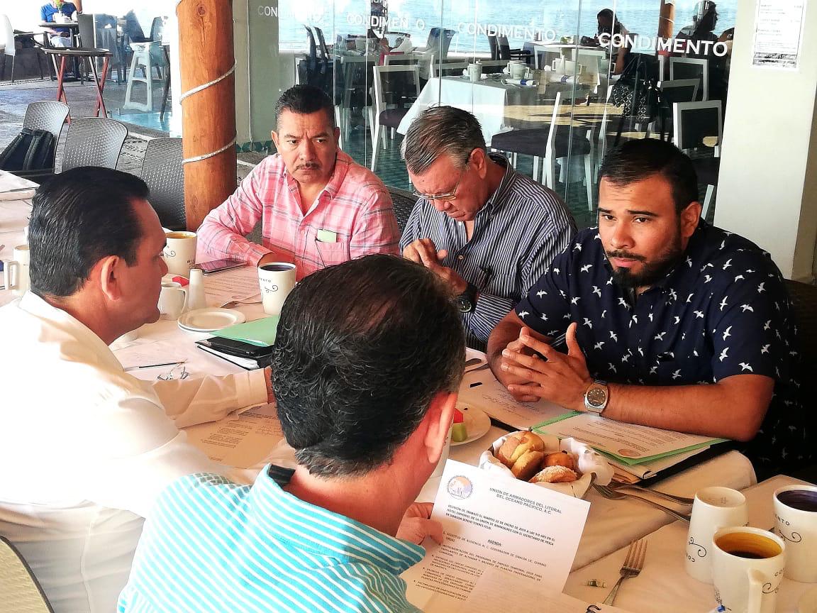 Estos fueron los principales acuerdos de la reunión del secretario de Pesca y Acuacultura, Sergio Torres Félix, con el nuevo dirigente de la Unión de Armadores del Litoral del PAcífico Mexicano, Jesús Omar Lizárraga Manjarrez, y los integrantes del consejo directivo de la misma.