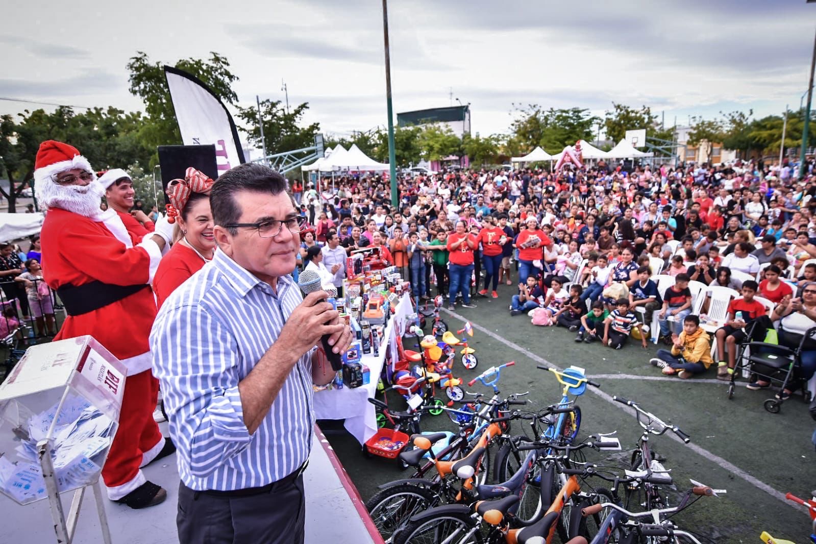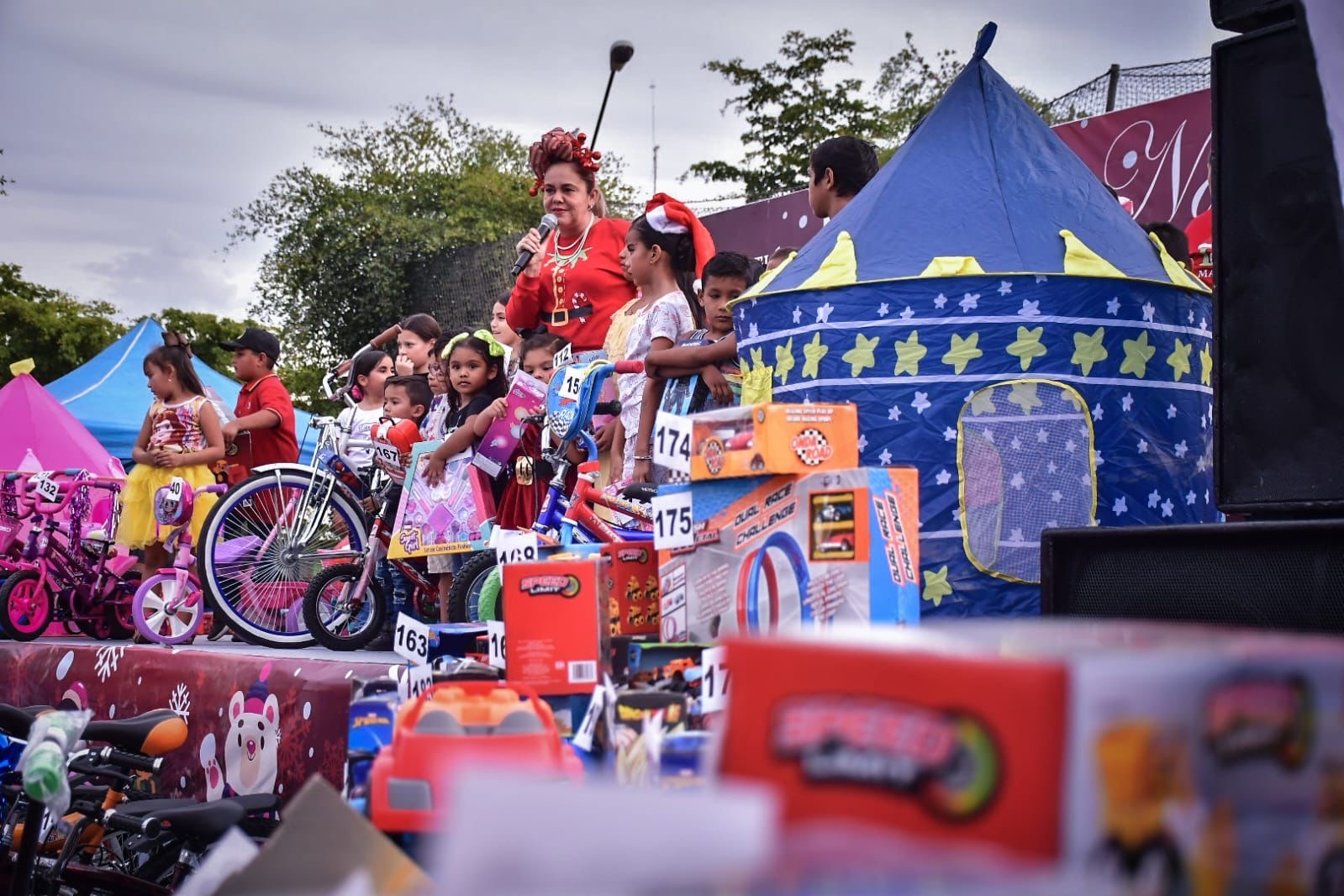 En un concurrido evento más de 4 mil niñas y niños recibieron dulces, pizza, pastel, algodones de azúcar, palomitas, juguetes y bicicletas.