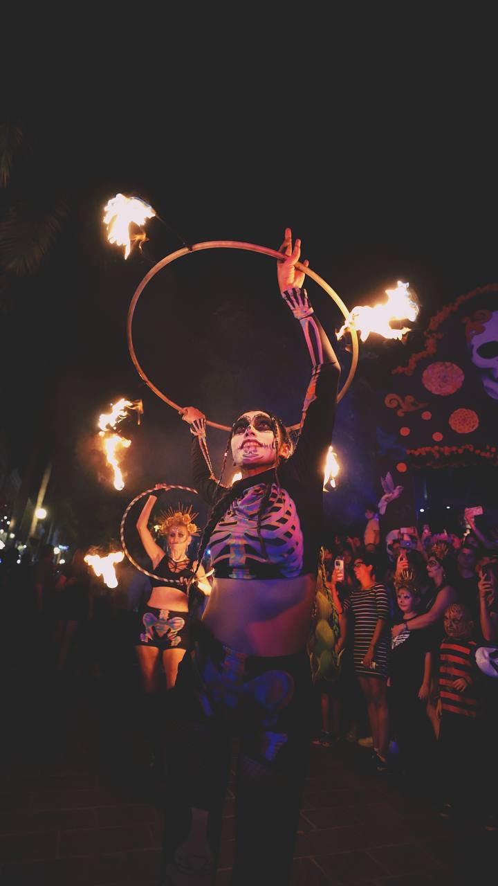 Artistas urbanos que danzan al ritmo de fuego, juegos pirotécnicos y una batucada conformada por percusionistas exaltarán el ánimo de quienes se sumen a la fiesta andante que recorrerá las calles del Centro Histórico en compañía de una imponente y mítica catrina.