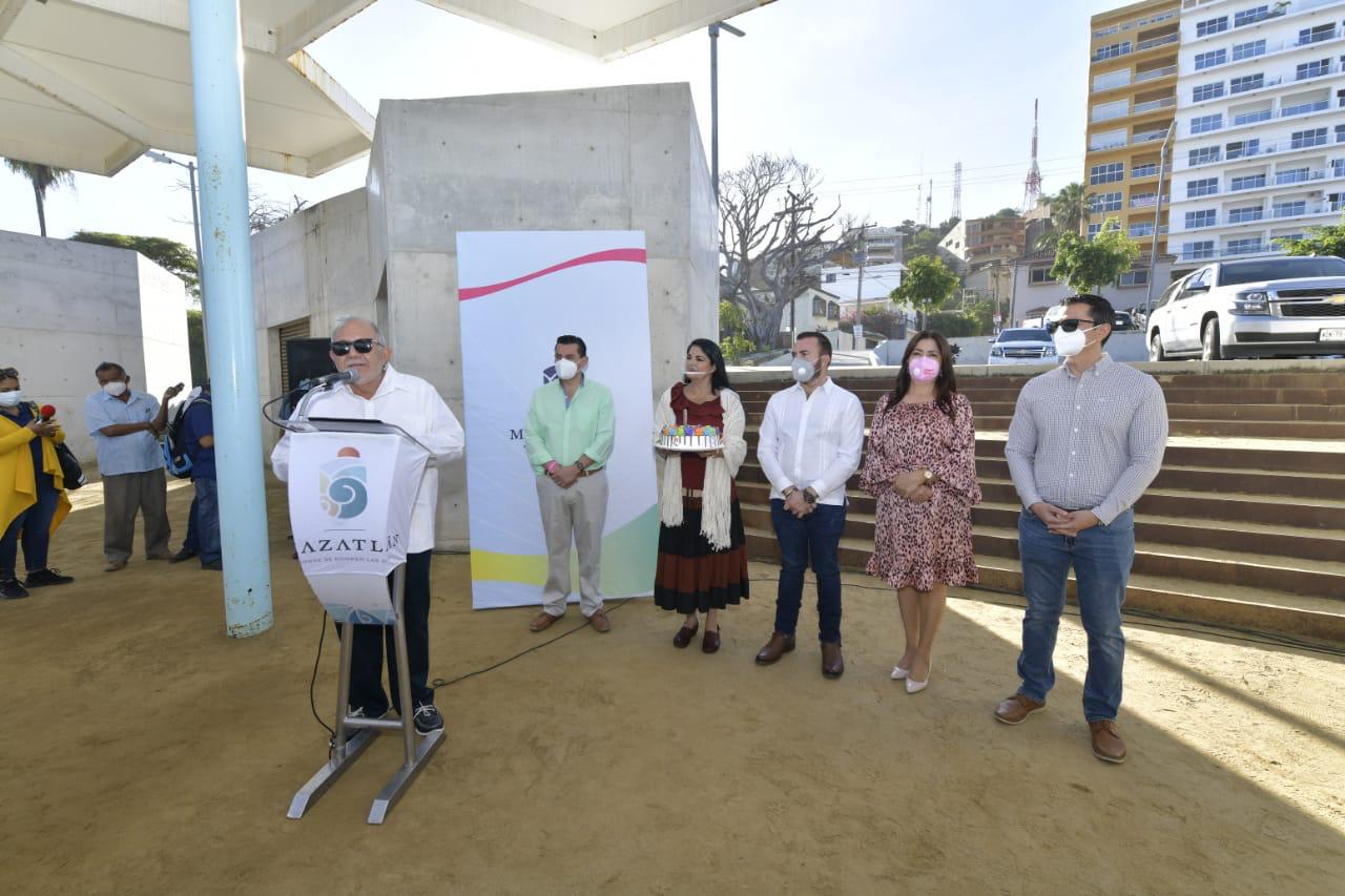 Mazatlán.- El Alcalde Luis Guillermo Benitez Torres dio el banderazo de inicio para la construcción de un espacio gastronómico y cultural en el Parque Ciudades Hermanas, que será en beneficio colectivo entre los municipios hermanados con el puerto.