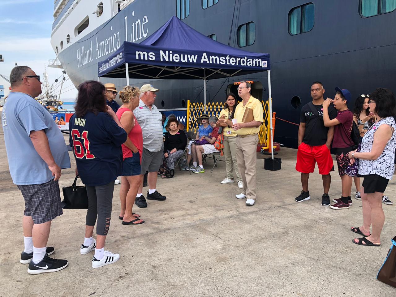 Una hora más tarde entró al muelle de la Administración Portuaria Integral el Nieuw Amsterdam, con 2,376 pasajeros y 834 tripulantes. A las 18:00 horas seguirá su recorrido con rumbo a Puerto Vallarta.