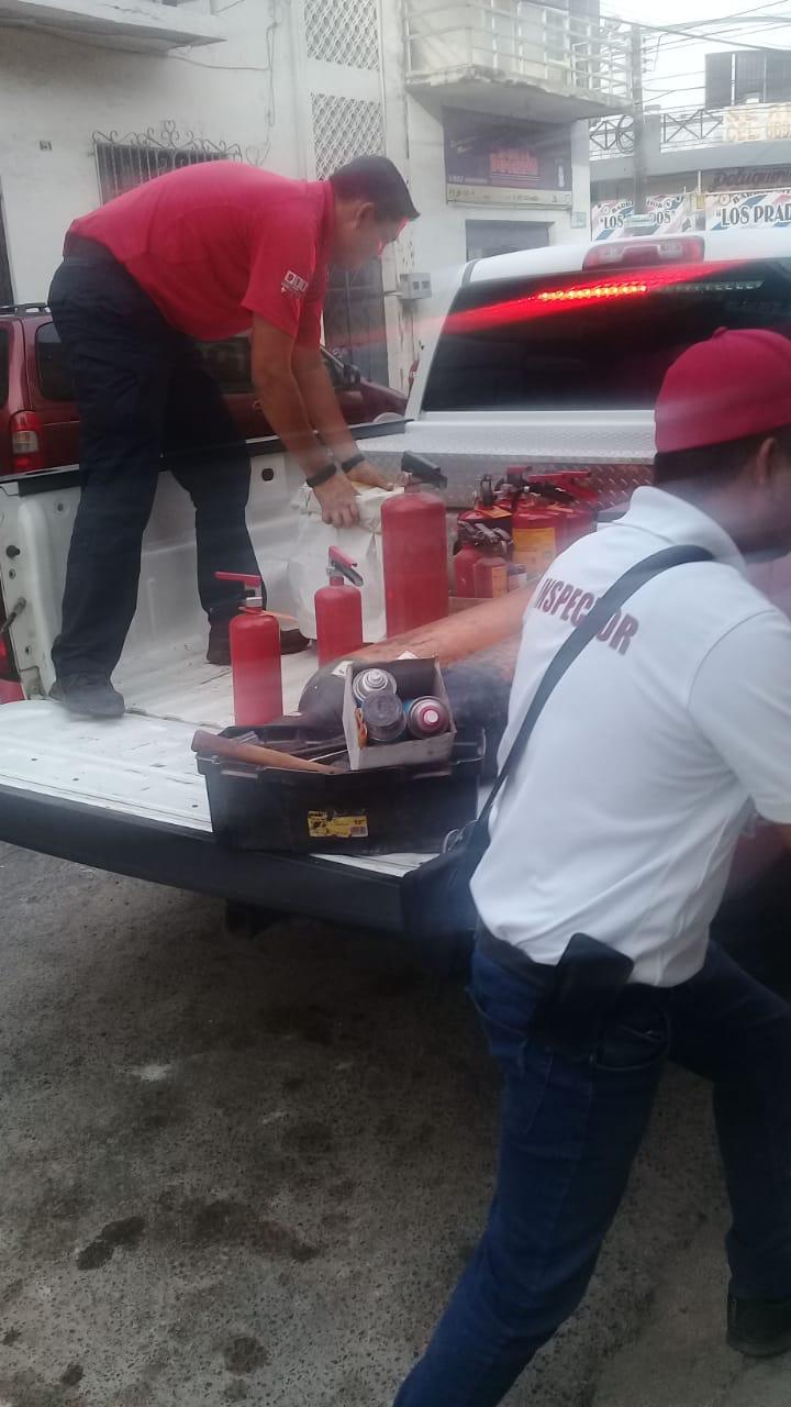 Mazatlán, Sinaloa.- Una camioneta con placas de Guanajuato, fue detectada por personal de Protección Civil que realizaba llenado de extintores sin cumplir con las normas necesarias para realizar la función y le fue decomisada la herramienta.