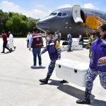 Culiacán, Sin.- La Secretaría de Salud de Sinaloa en compañía del Comando Estatal de Vacunación acudieron este día a la Base Aérea Militar del Aeropuerto Internacional de Culiacán para testificar la llegada de alrededor de 134 mil dosis de vacunas de AstraZeneca para seguir haciendo frente al COVID-19.