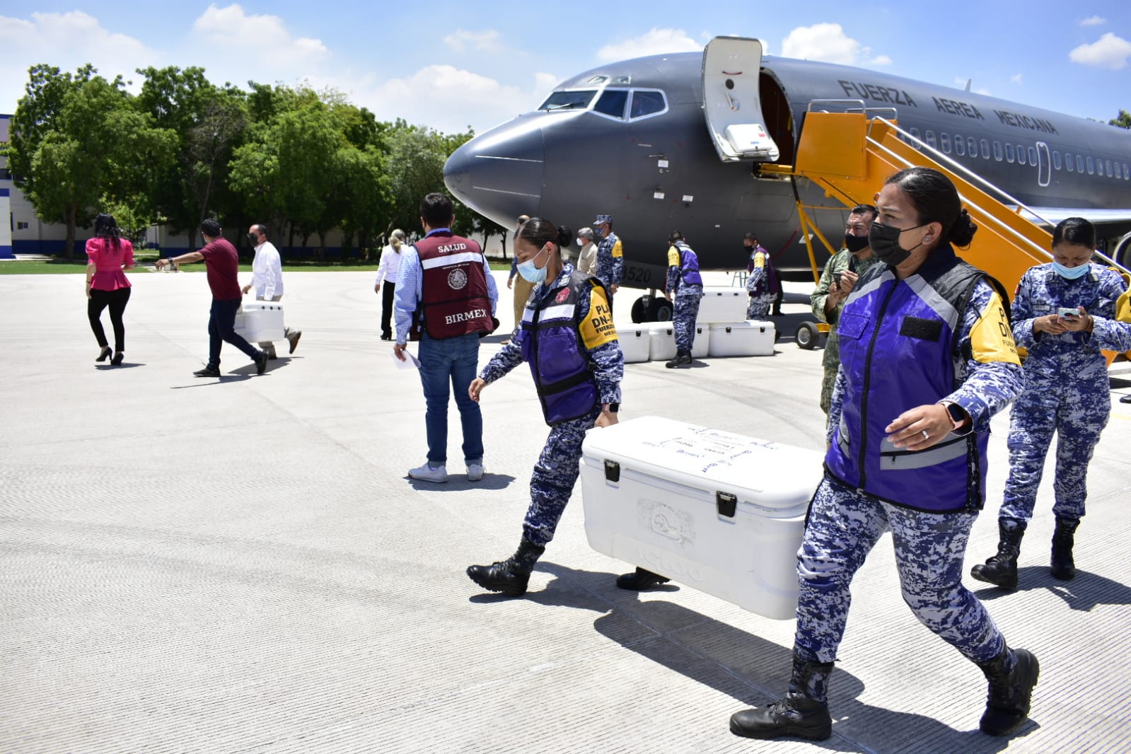 Fuerzas Armadas, sector salud integrado por la Secretaría de Salud de Sinaloa, ISSSTE, IMSS, Delegación de Bienestar, y como parte del sector educativo la Universidad Autónoma de Sinaloa fueron los encargados de la recepción de una nueva remesa de vacunas para los sinaloenses.