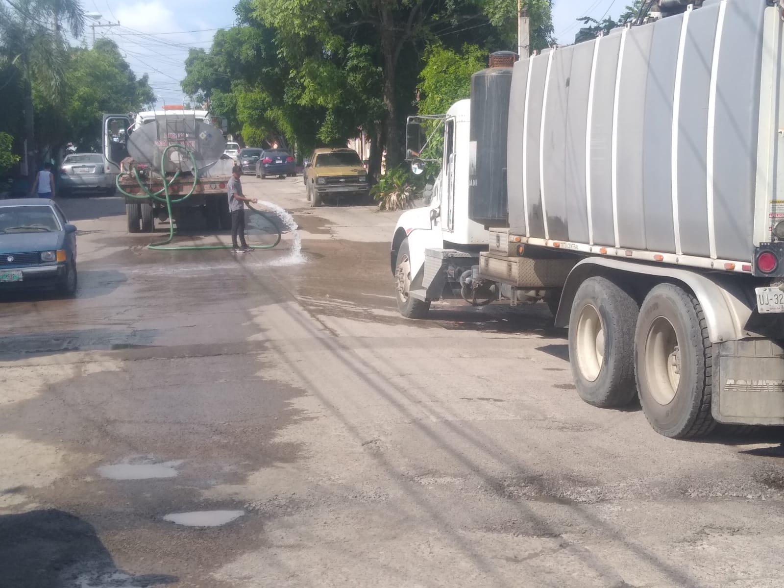 Cabe señalar que, con el apoyo de Tránsito Municipal, la calle se mantuvo cerrada entre las 10:00 de la mañana hasta las 2:00 de la tarde, a fin de realizar los trabajos de desazolve de los cinco pozos de visita y realizar el lavado del arroyo vial, en donde también hubo colaboración de los vecinos.