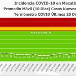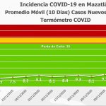 Sin embargo, el Termómetro de Nuevos Casos Diarios del Ayuntamiento de Mazatlán presentó un ligero incremento y este día amaneció con 10.2 grados Covid, en el promedio de los 10 últimos días.