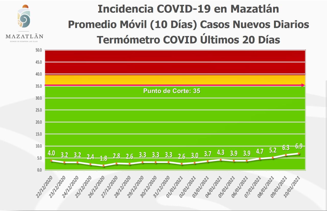 El Termómetro de Casos Nuevos Diarios, con el que Gobierno Municipal observa la incidencia de la pandemia, éste se ubicó en los 6.9 grados Covid, y cumplió ya los 95 días por debajo de los 15 grados, promedio móvil de los 10 últimos días.
