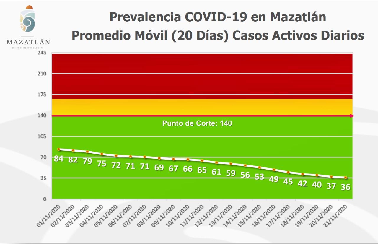 La prevalencia de la pandemia en el puerto sigue muy alejada de la franja de alerta, pues hoy registró 35 casos activos, mientras que el promedio de los 10 últimos días se ubicó en 36. Esto también es una buena noticia, porque se mantiene una tendencia favorable a la baja.