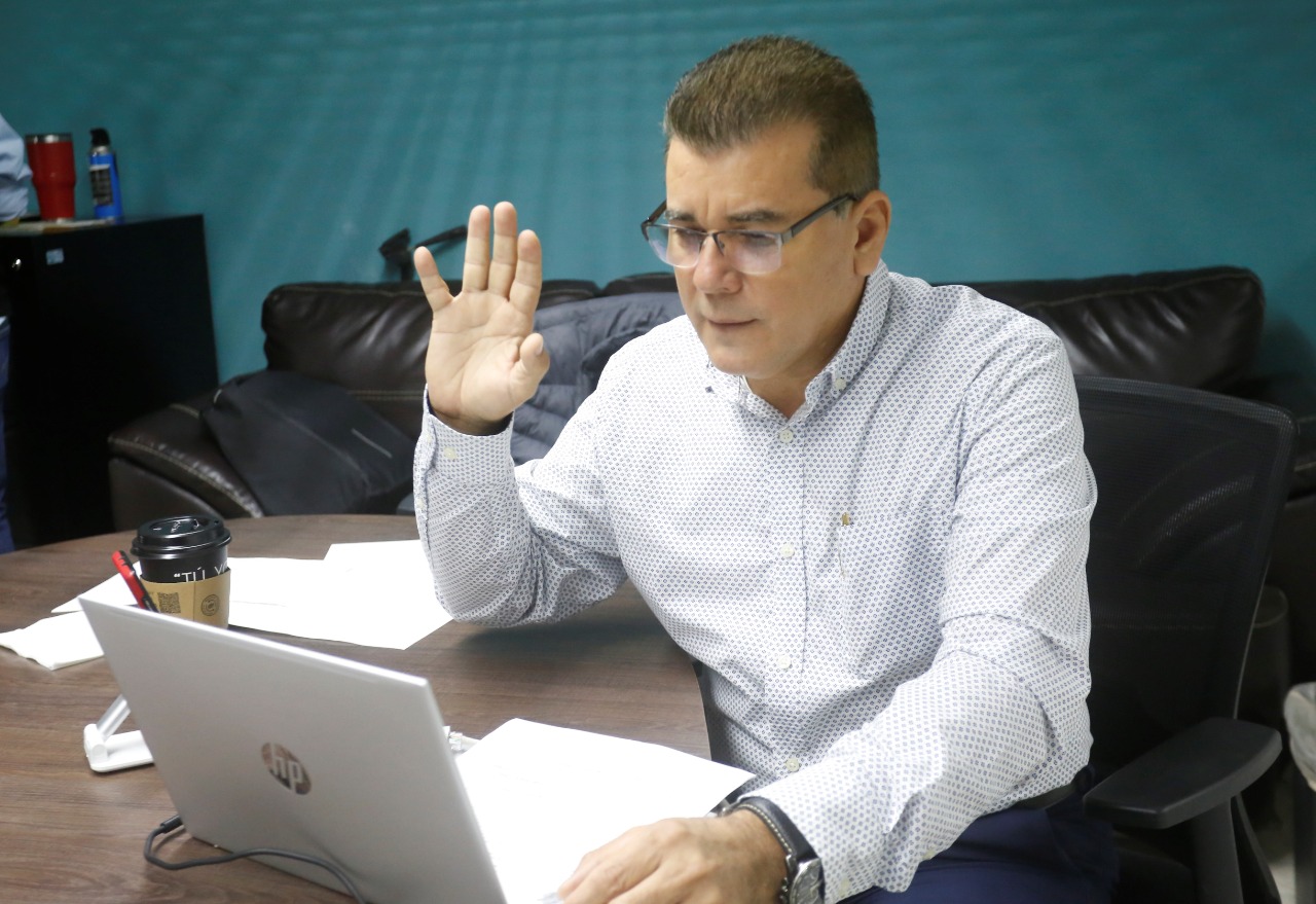 Édgar Augusto González Zataráin, Secretario del Ayuntamiento y en representación del Alcalde Luis Guillermo Benitez Torres, encabezó la reunión que se hizo a en la modalidad de videoconferencia a través de la plataforma digital Zoom.