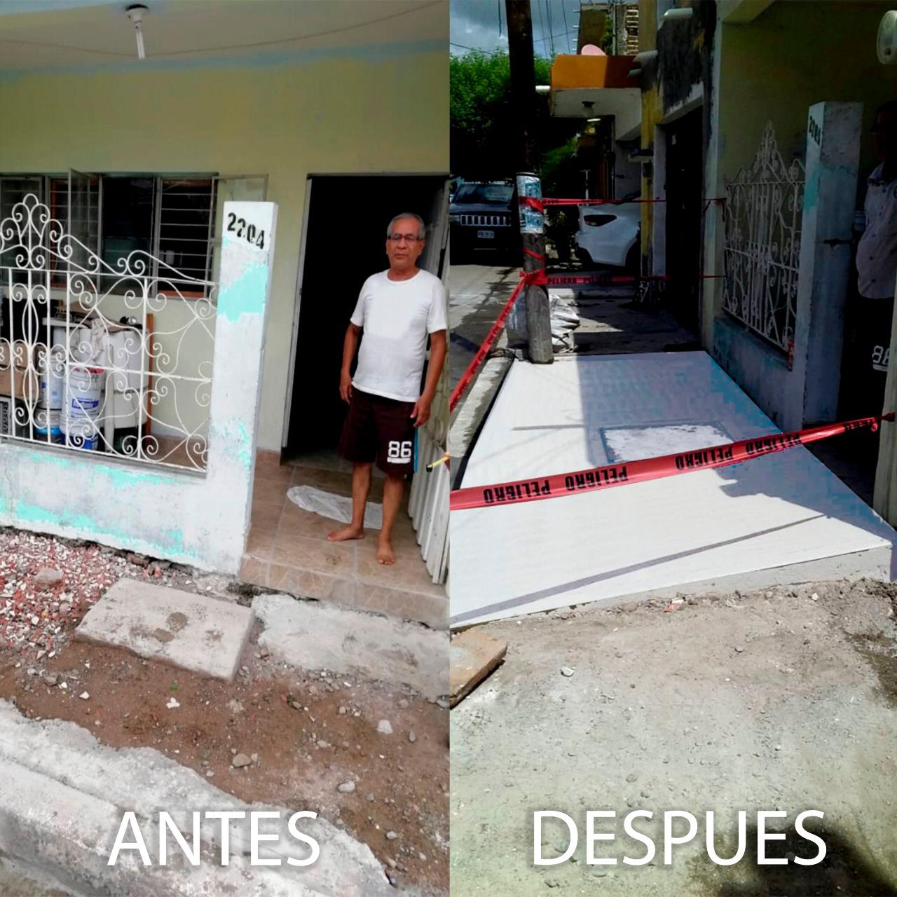 Además gracias a la gestión de la Señora Gabriela Peña Chico la Dirección de Obras Públicas del H. Ayuntamiento de Mazatlán ayudó a la familia a construir una banqueta lisa con rampa para que el traslado de Jorge fuera más sencillo y sin complicaciones.