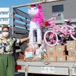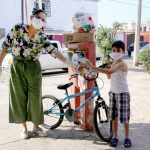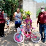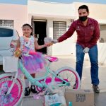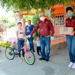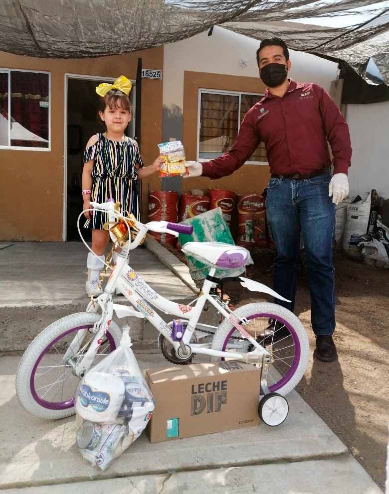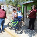 Esta mañana se entregaron las bicicletas 43 bicicletas rifadas virtualmente a las niñas y niños que resultaron ganadores como regalo conmemorativo al día 30 de abril, Día de la Niñez, además se les entregó dulces, una caja de lechitas y una despensa con productos de la canasta básica como apoyo ante la contingencia que provoca el Covid 19.