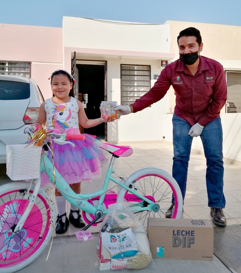 Con un cariñoso mensaje y una cálida felicitación la señora Gabriela Peña Chico, Presidenta de DIF Mazatlán, entregó la primera bicicleta al niño Gael, quien se encuentra becado por parte de la paramunicipal y resultó ganador en la rifa, y dijo que aun en tiempos difíciles era muy importante conmemorar el Día de la Niñez en Mazatlán.