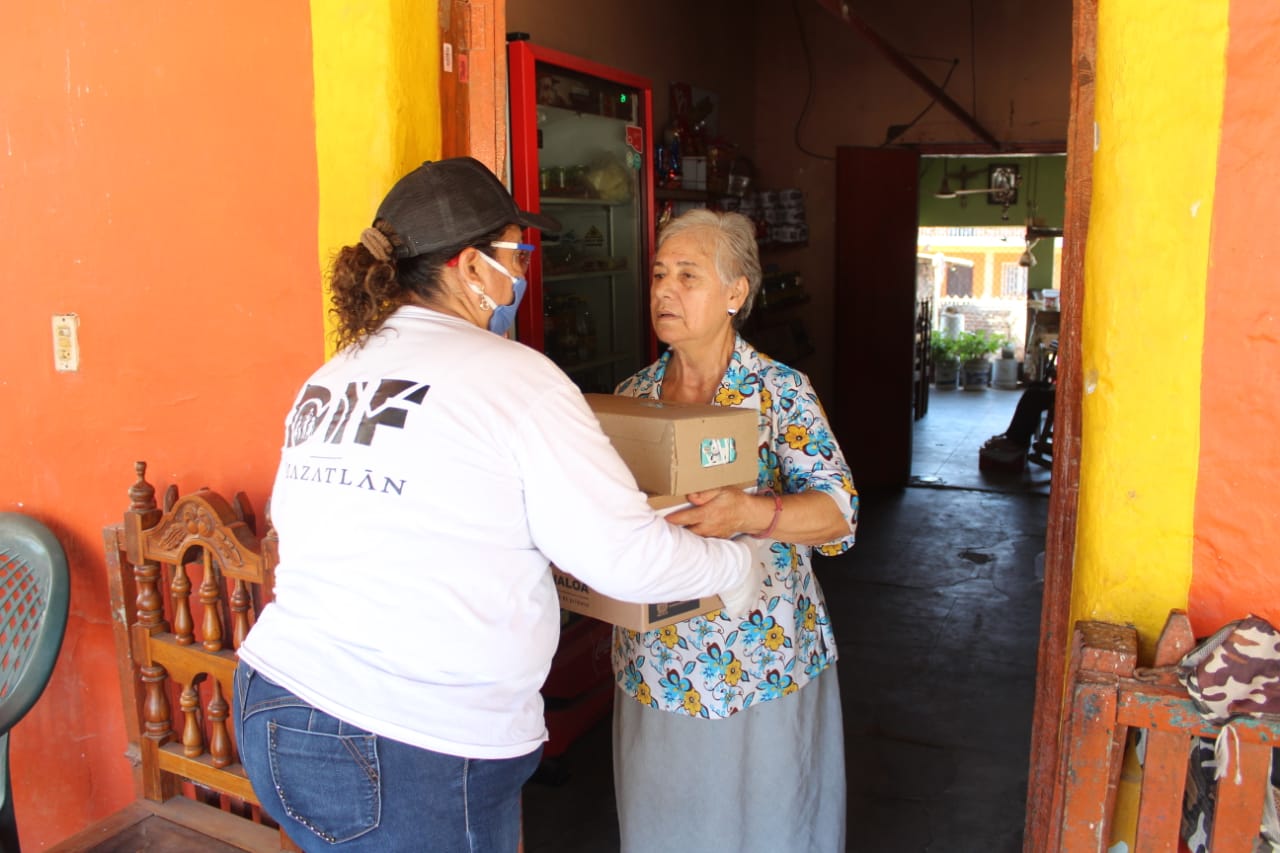 En total el equipo de DIF Mazatlán entregó 414 despensas con productos de la canasta básica como frijol, aceite, harina, sopa, atún, entre otros