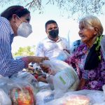 “Estamos muy contentos este día aquí en la comunidad de Jinetes, hicimos aproximadamente tres horas en llegar por la travesía, por el tipo de camino, pero esta parte de la sierra nos faltaba para llegar y entregar todos los apoyos invernales que consiste en despensa, leche, cobijas (…)”, comentó.