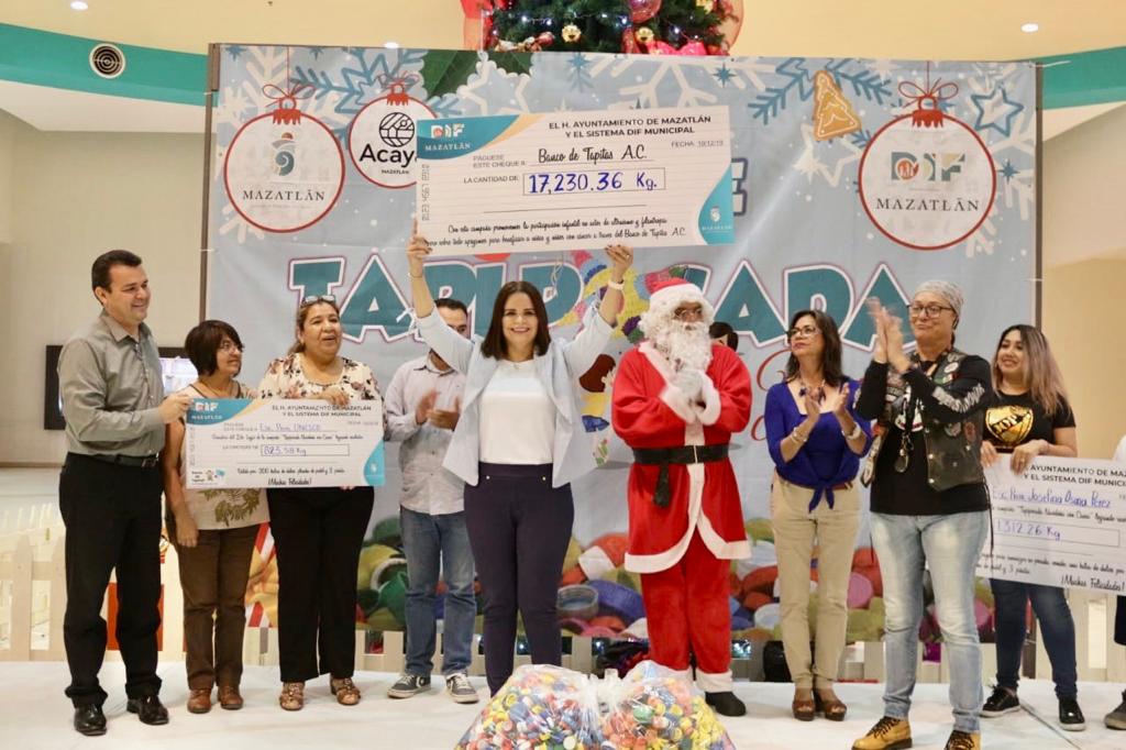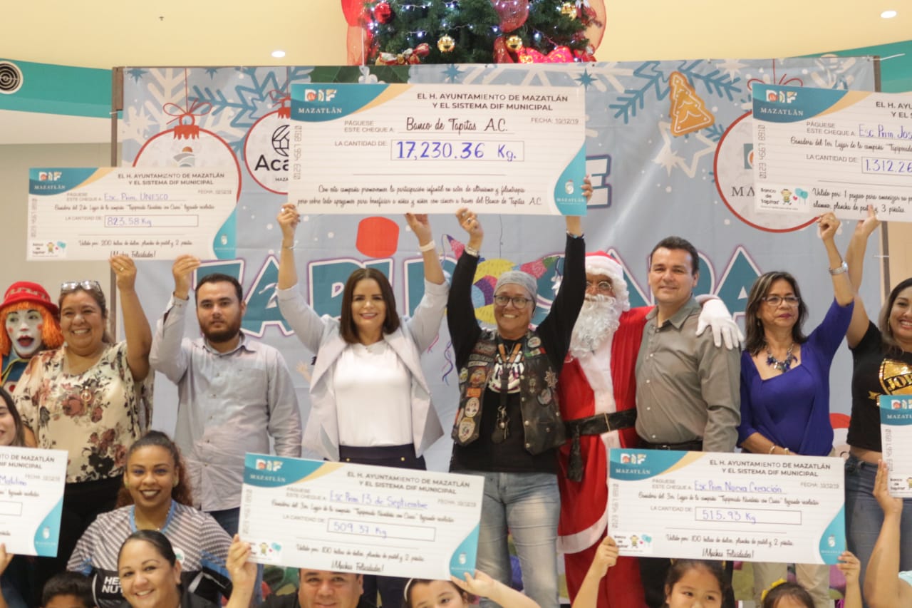 Mazatlán.- Después de dos días de arduo trabajo en el pesaje de la Campaña Tapiposada Navideña que organizó DIF Mazatlán, y el H. Ayuntamiento de Mazatlán que encabeza el Alcalde Químico Benítez Torres, se dieron a conocer las 10 escuelas ganadoras quienes recibirán todo lo necesario para sus posadas escolares.