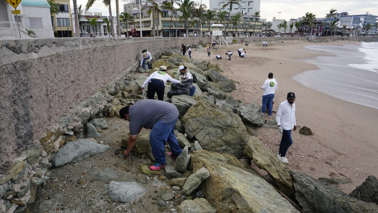 Mazatlán, SIN.- Personal de la Dirección de Ecología y Medio Ambiente, en conjunto con la Operadora y Administradora de Playas del Gobierno Municipal y JUMAPAM, realizaron este miércoles una jornada de limpieza en la zona de playa de Olas Altas, acción con la que buscan concientizar a la ciudadanía para que ya no utilice productos desechables debido a la contaminación al medio ambiente.