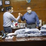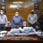 El Químico Benitez Torres recibió en su despacho a los representantes de dicha compañía y al titular de Seguridad Pública de Mazatlán, Federico Rivas Valdés, donde se hizo entrega de este apoyo.