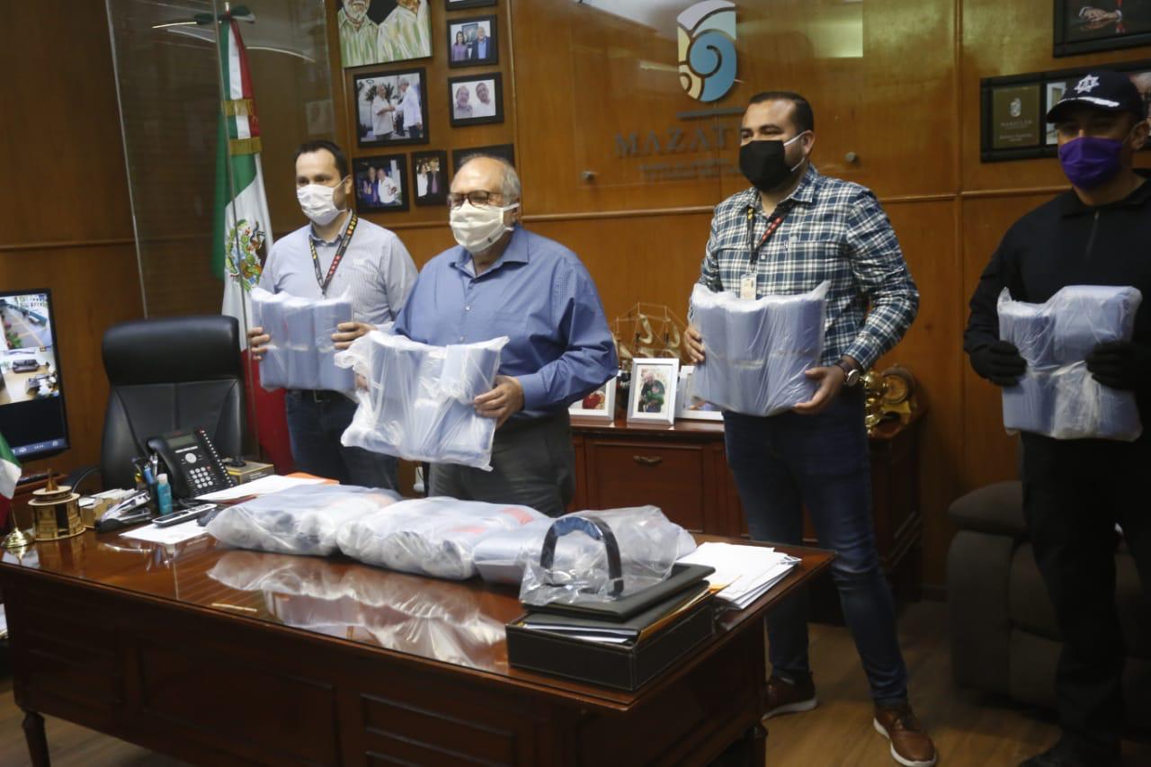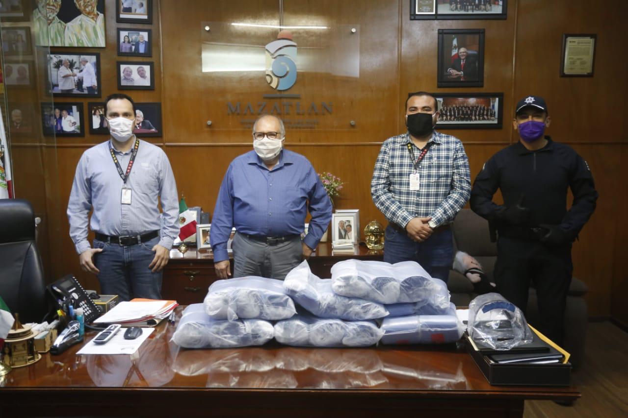 El Químico Benitez Torres recibió en su despacho a los representantes de dicha compañía y al titular de Seguridad Pública de Mazatlán, Federico Rivas Valdés, donde se hizo entrega de este apoyo.