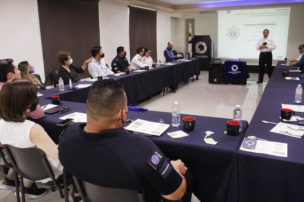Mandos de la Policía Preventiva y PC se reúnen con consejeros de Canacintra para socializar plan de trabajo y resultados.