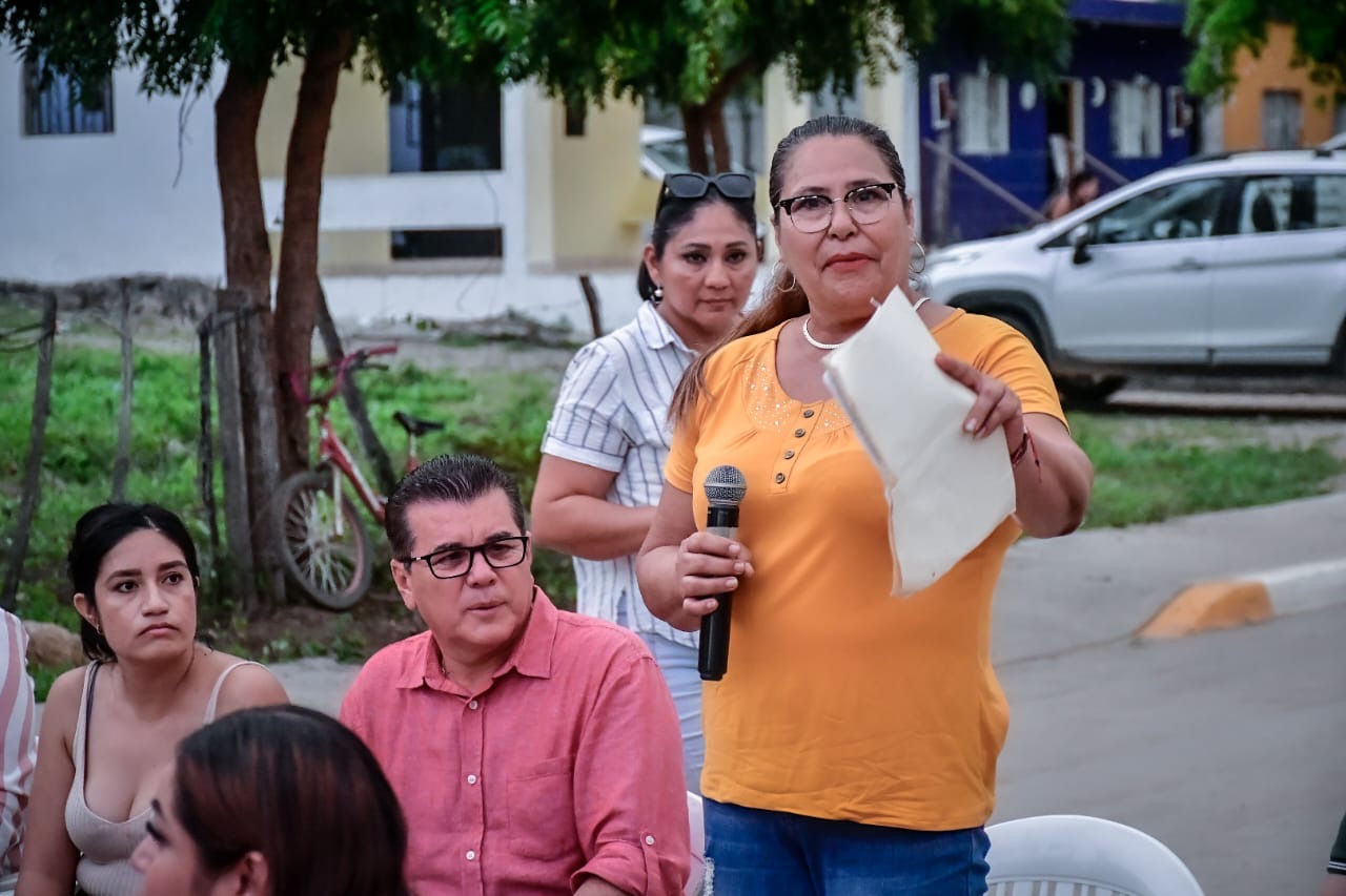 La comisaria Hilda Esperanza Rodríguez Gaxiola y Tania Guadalupe Silva Castellanos, presidenta del comité de obras agradecieron al Primer Edil por beneficiar a su comunidad.