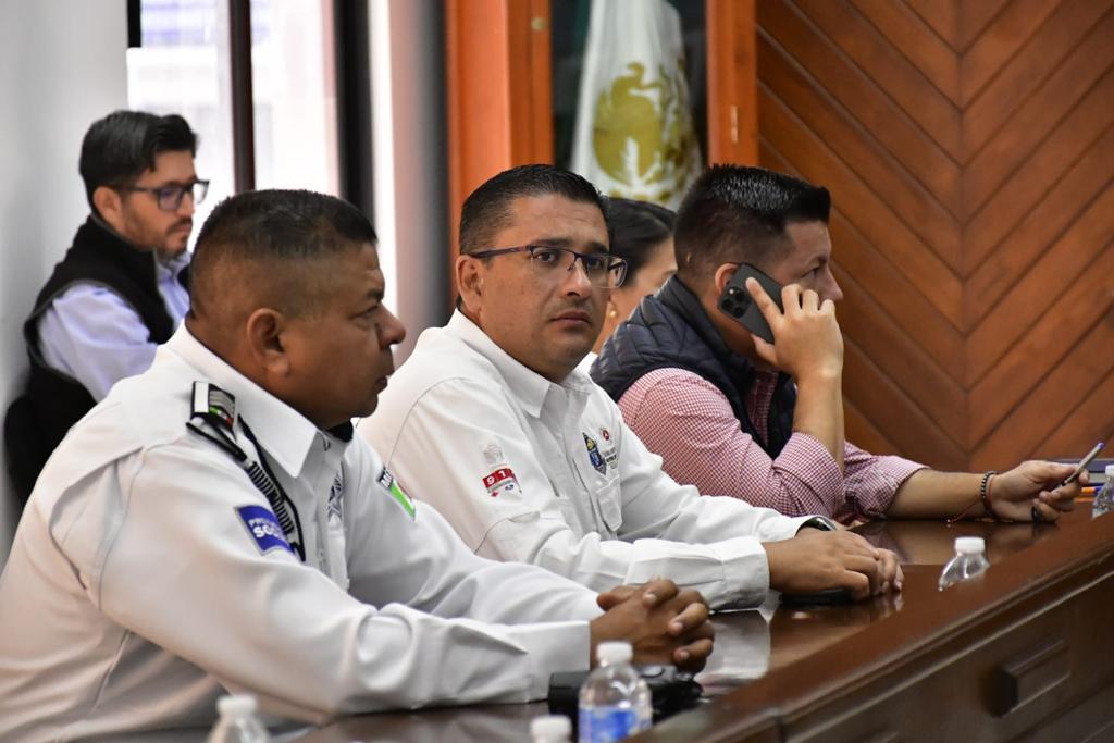 En la reunión también estuvo presente: Loar López, Secretario de Presidencia; Eloy Ruiz, Coordinador de Protección Civil Municipal; Juan Camacho Torres, Subinspector de Tránsito; Paloma Gutiérrez, Directora de Comunicación Social; Leticia López, Directora de Relaciones Públicas y Cristian Castillo, Encargado de Protocolos.