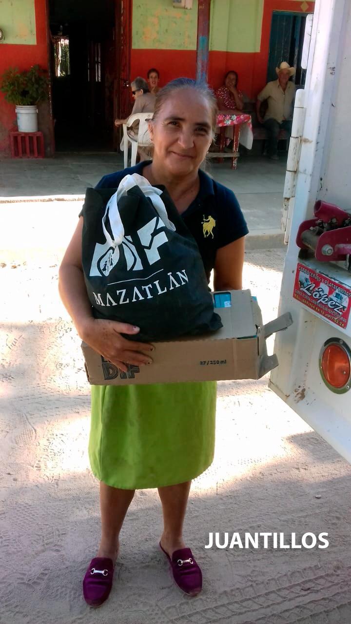 La Brigada de DIF Mazatlán llegó hasta El Tecomate de la Noria, una comunidad que se encuentra a 4 horas de camino desde el puerto, también se benefició a habitantes de Los Metates, Cerro Pinto, Cerro Verde, La Osa, El Guamúchil, Los Copales, El Placer y Juantillos, donde se benefició a 305 familias en situación de vulnerabilidad con despensas y cajas de leche.