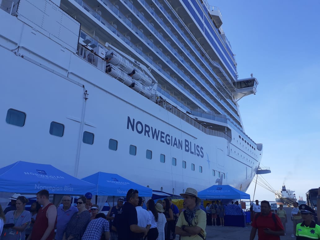 Mazatlán, Sin., octubre 10 de 2019.- Mazatlán recibió esta mañana el crucero turístico Norwegian Bliss, procedente de Puerto Vallarta, con 4,812 pasajeros y 1,716 tripulantes.