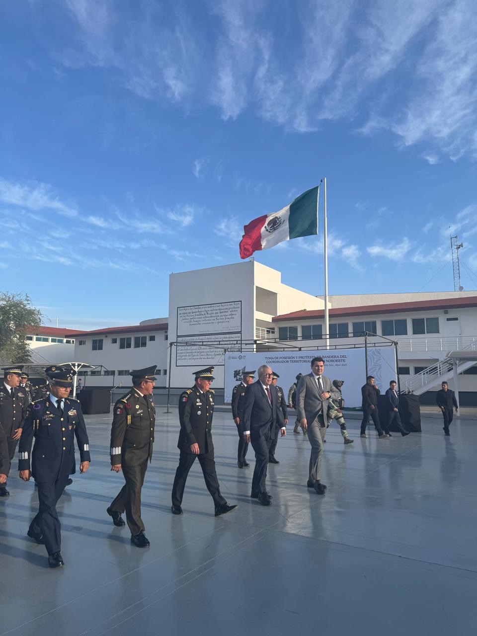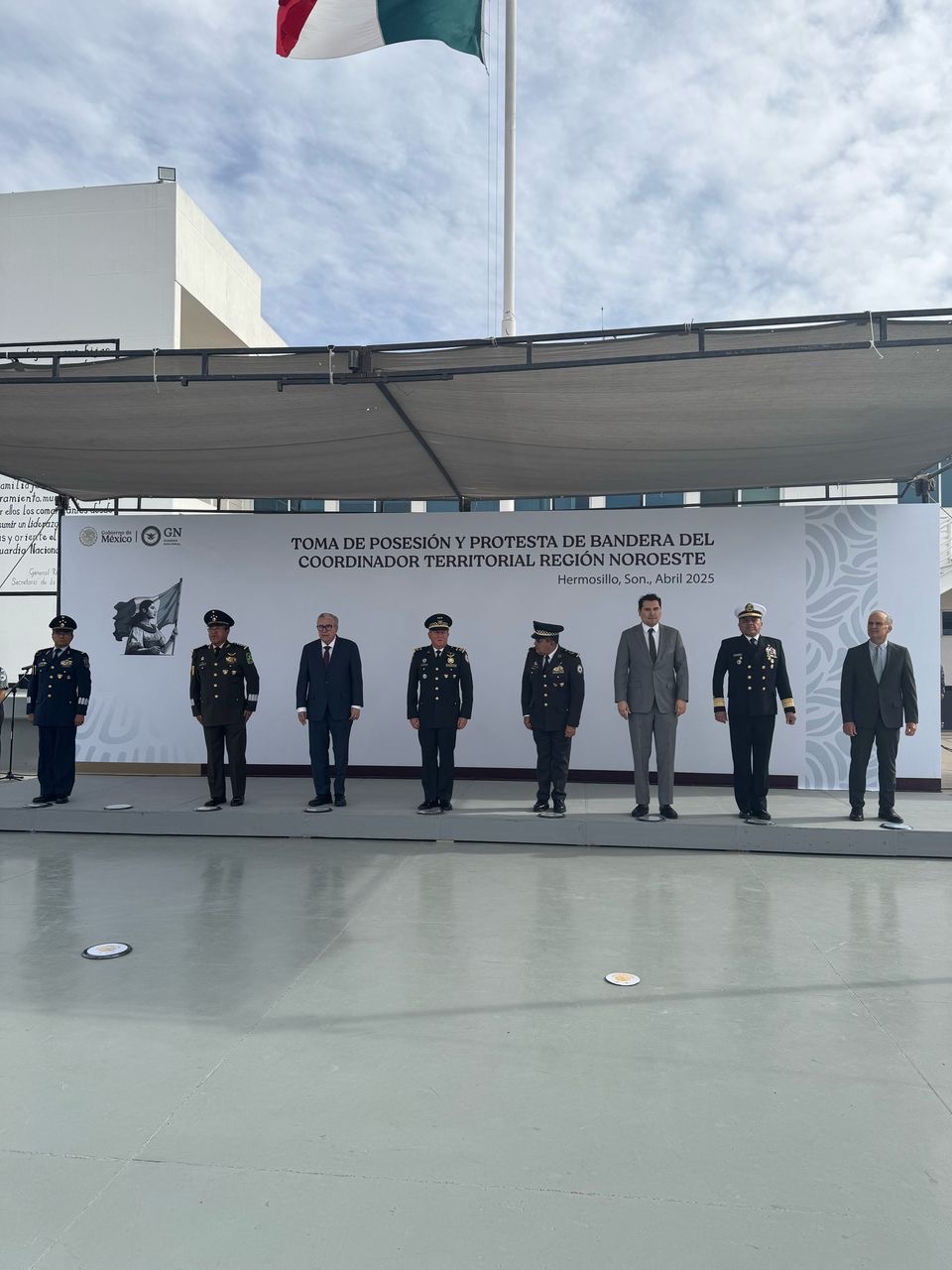 Hermosillo, Sonora 02 de abril de 2025.- El Gobernador del Estado Dr. Rubén Rocha Moya, fue invitado de honor a la toma de posesión al mando y protesta de bandera, del General de Brigada Estado Mayor Crisóforo Martínez Parra, como Coordinador Territorial Región Noroeste de la Guardia Nacional, el cual estuvo a cargo del General de División Hernán Cortés Hernández, Comandante de la Guardia Nacional federal.