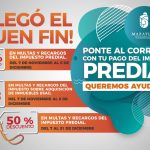 Ante la gestión de la Comisión de Hacienda, encabezada por el Regidor Bernardo Alcaraz Conde, el 27 de octubre se aprobó que a partir de este 07 de noviembre y hasta el 06 de diciembre se aplicará un 100% de descuento en multas y recargos en el pago del impuesto predial, así como en el concepto de generación de basura; derecho de mercados municipales; derecho de pago de licencias de alcoholes y uso de piso en la vía pública y sitios públicos, además de un 50% de descuento en el Impuesto Sobre Adquisición de Inmueble (ISAI).