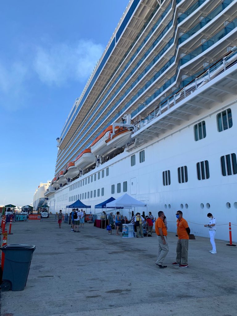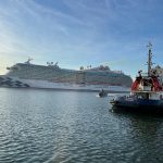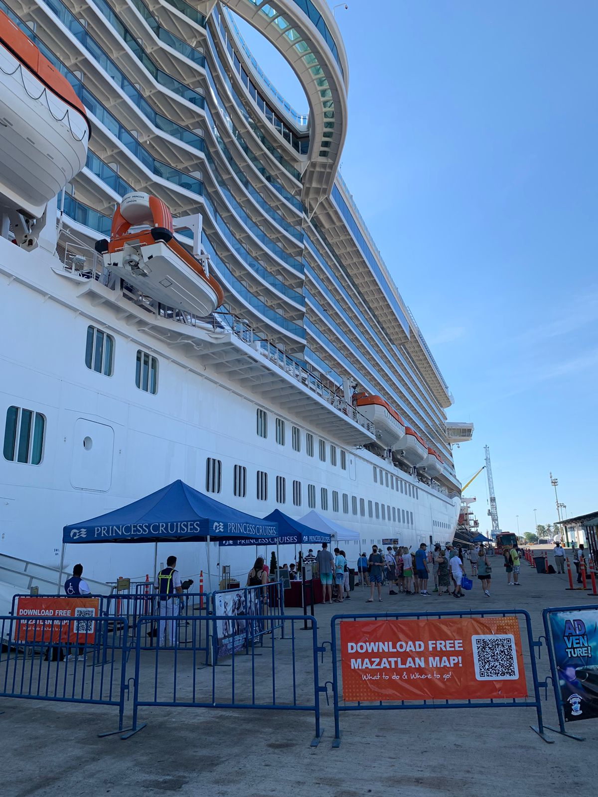 Su entrada al muelle de la Administración Portuaria Integral (API) fue a las 07:00, horas, de acuerdo a su itinerario, procedente de Cabo San Lucas. Además de los cruceristas, a bordo vienen 1 mil 235 tripulantes, y continuará su travesía marítima a las 18:00 horas, con destino a Puerto Vallarta.