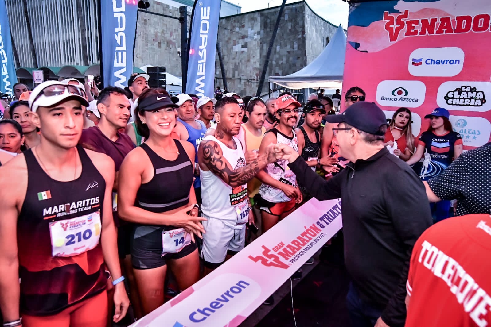 «Listos para iniciar. Les agradezco que visiten Mazatlán, que participen, que retomemos este gran evento, el maratón Mazatlán, y sobre todo con este impulso que trae Luis Antonio, porque precisamente este maratón le dio mucha identidad a Mazatlán, logró tener uno de los mejores niveles y vamos a retomarlo, felicidades a todos, vamos con todo», expresó el Alcalde de Mazatlán en su mensaje de bienvenida.