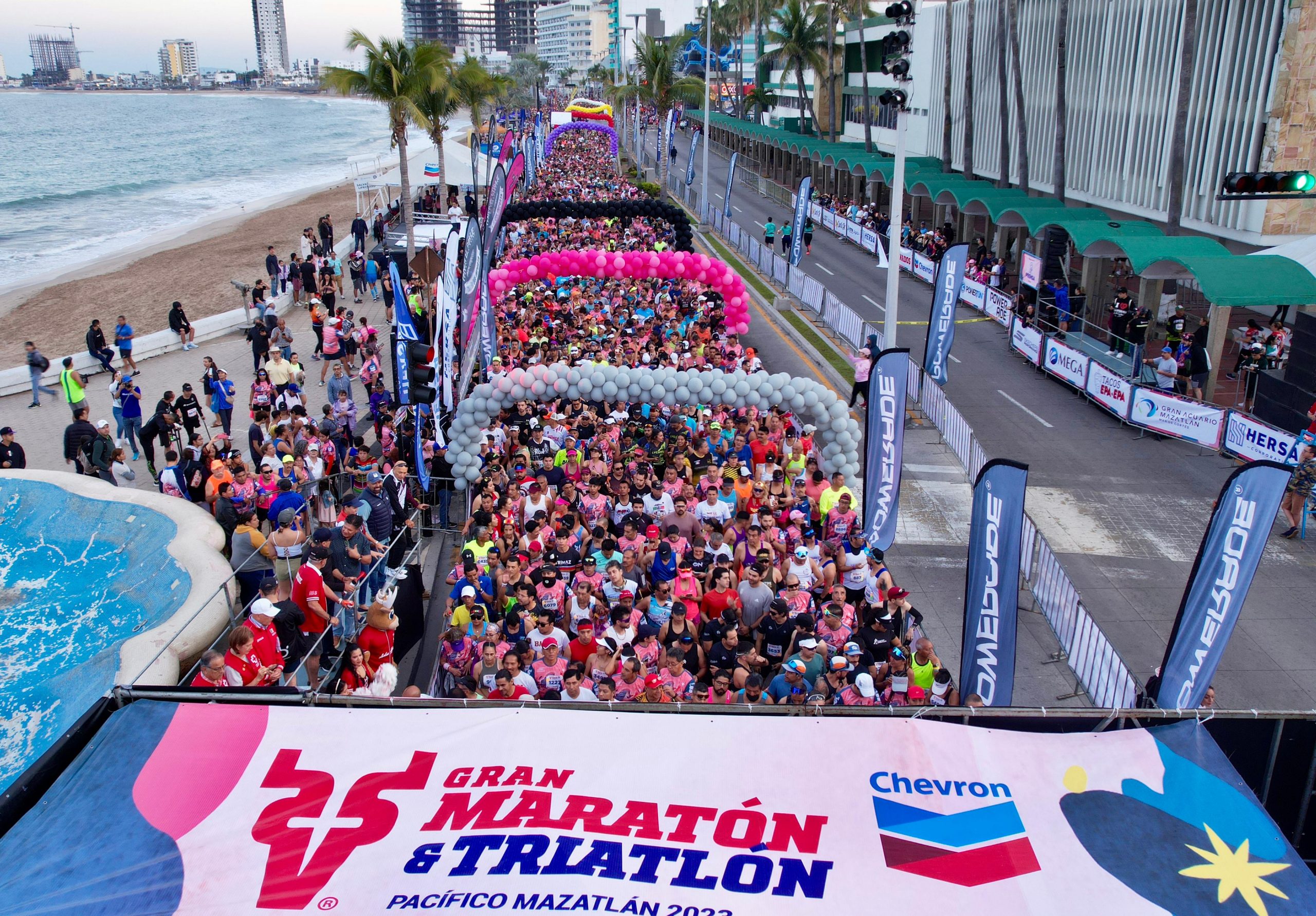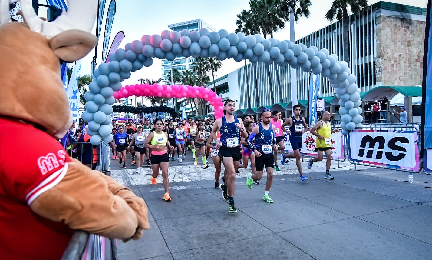En punto de las 6:30 horas, los fondista se encaminaron a completar los 42.195 kilómetros correspondientes, impulsados por la alegría y ánimo que llenaron las gradas y calles principales aledañas al Malecón de Mazatlán, reconocido como el segundo más largo del mundo, únicamente superado por el de Río de Janeiro.