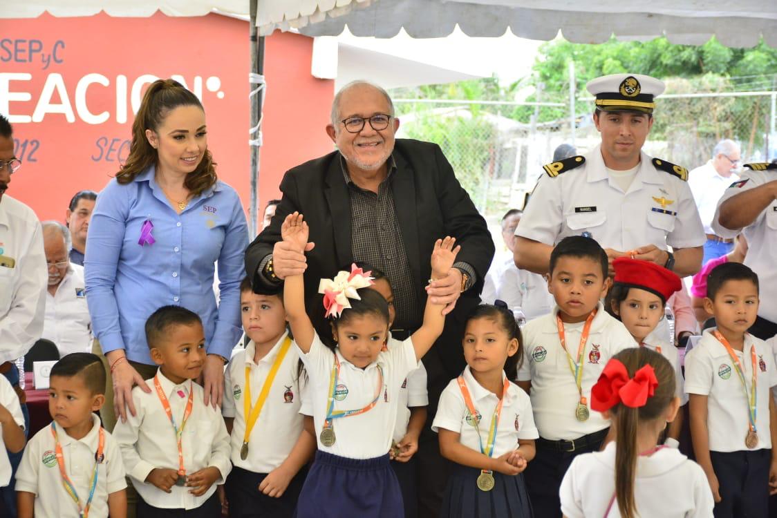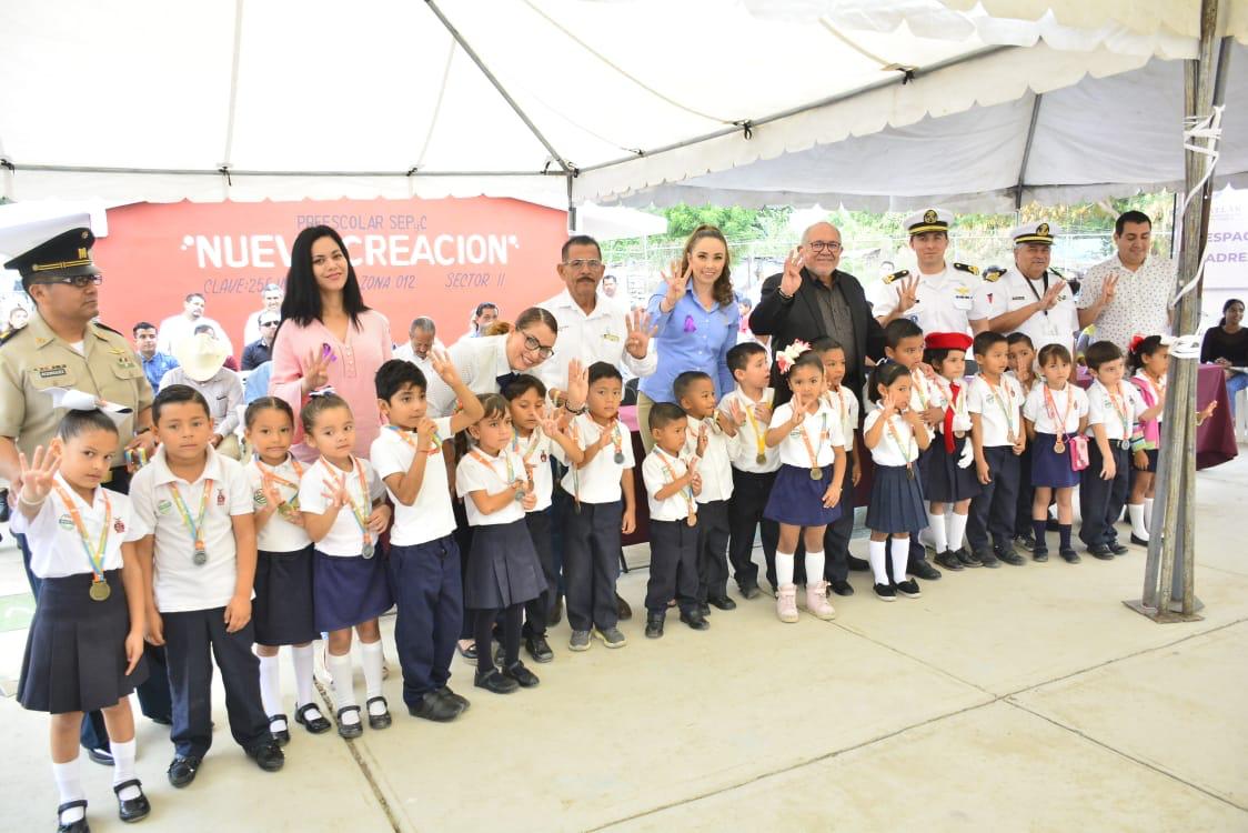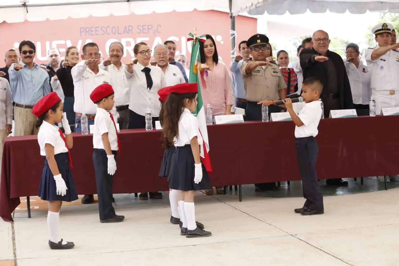 Celebran Lunes Cívico en el jardin de niños de Villa Tutuli; el Alcalde se compromete a construir una techumbre