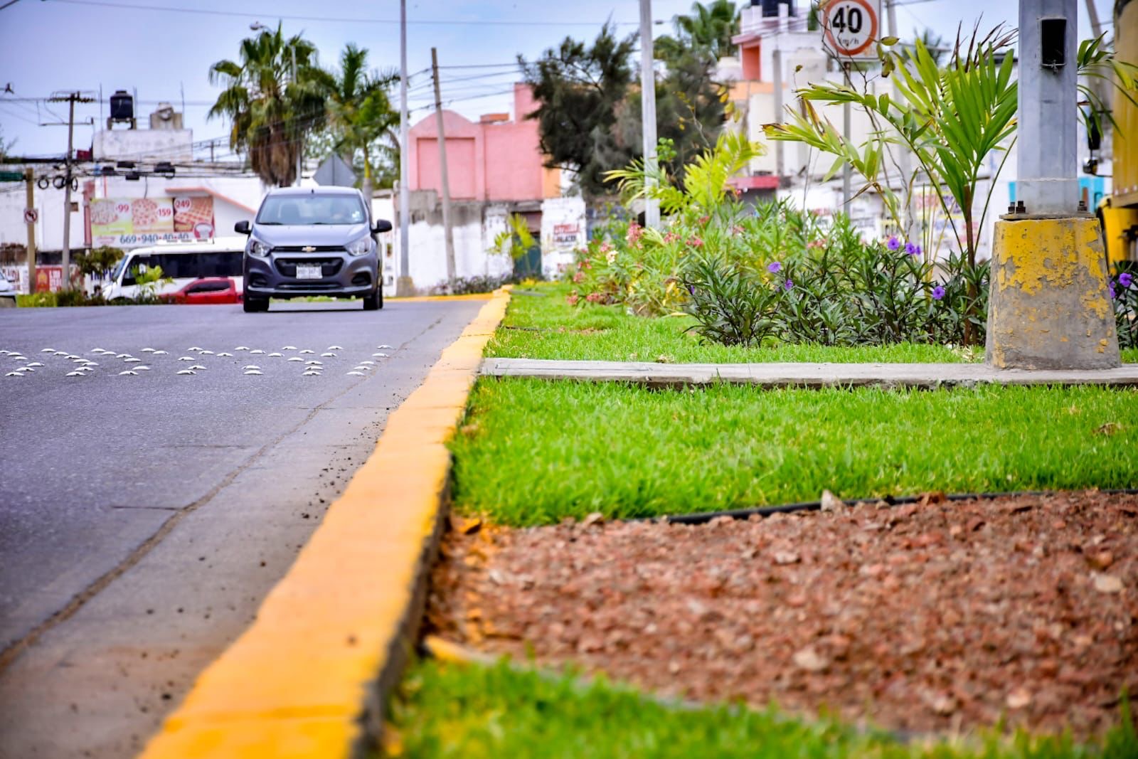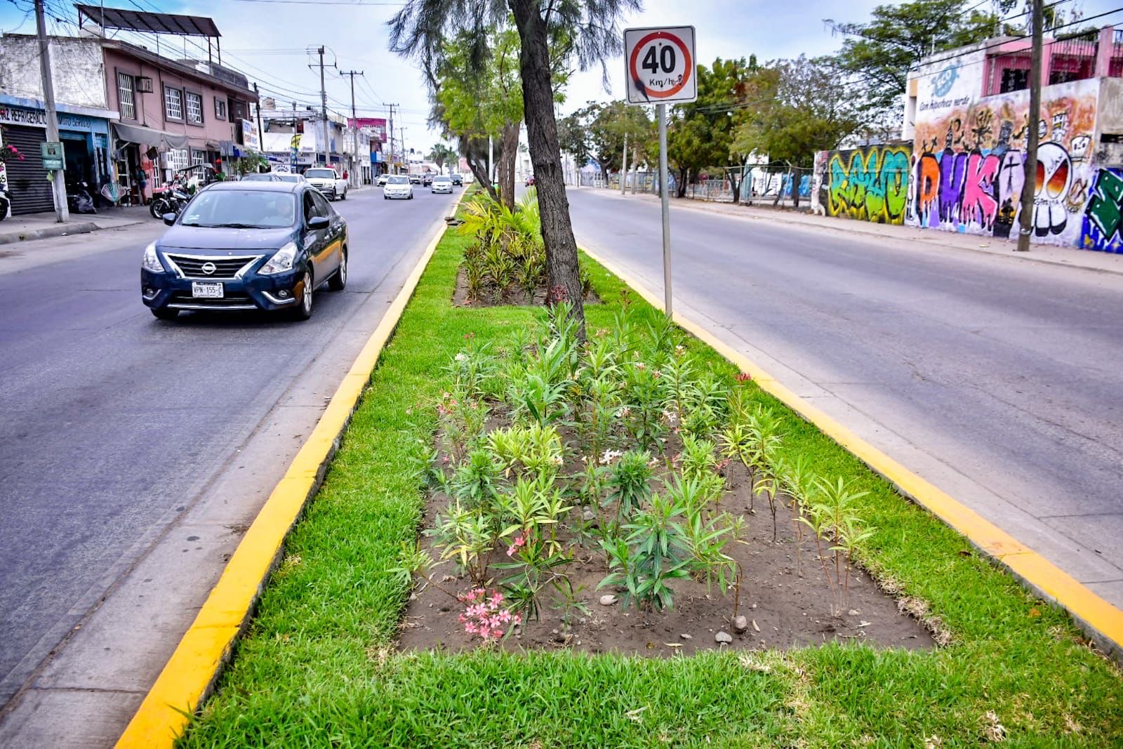 Cuadrillas de trabajadores del área realizaron la limpieza de maleza, remoción de tierra muerta y plantación de flora para dar realce al valor estético de la vialidad que es muy transitada.