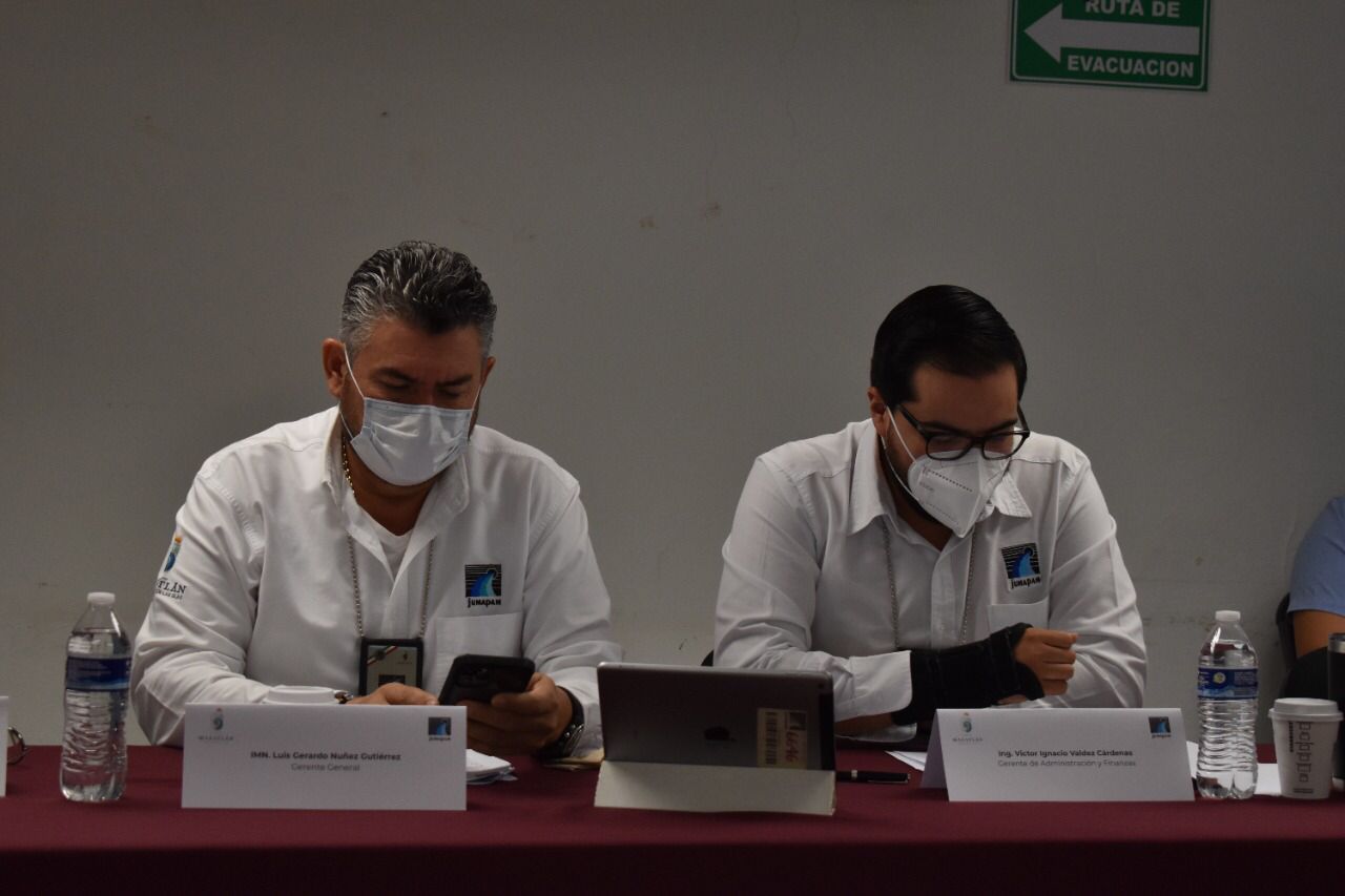 Atendiendo los protocolos sanitarios emitidos por las autoridades de salud, para prevenir y contener el Covid-19, la reunión se realizó de modo híbrido, contando con la presencia del pleno del Cuerpo Gerencial de Jumapam, y el Consejero Suplente por Canacintra, Sergio Rojas Velarde; mientras que vía zoom asistieron Guillermo Romero Rodríguez, Consejero por la Canaco; Jorge García Félix, consejero por Coparmex; Roberto Arellano, por el Colegio de Valuadores; el Secretario del Ayuntamiento, José de Jesús Flores; y el Tesorero Municipal, Javier Alarcón.
