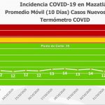 Mazatlán.- Con 11 grados Covid amaneció hoy la ciudad, que desde el pasado viernes 30 ha registrado una tendencia estable con signos favorables a la baja. Este resultado es el promedio móvil de los últimos días que registra el Termómetro Covid de Casos Nuevos Diarios.