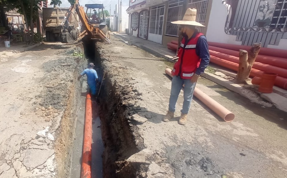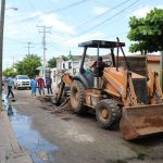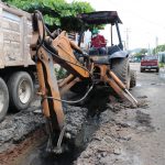 A través de la Junta Municipal de Agua Potable y Alcantarillado de Mazatlán, se trabaja en la rehabilitación de la red de atarjeas de la Calle El Recodo, en el Fraccionamiento San Joaquín.