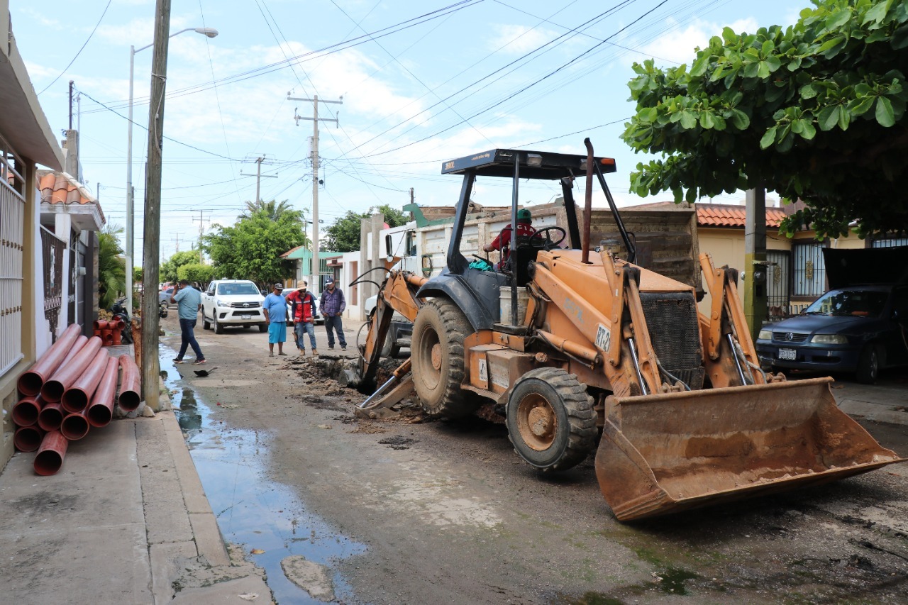A través de la Junta Municipal de Agua Potable y Alcantarillado de Mazatlán, se trabaja en la rehabilitación de la red de atarjeas de la Calle El Recodo, en el Fraccionamiento San Joaquín.