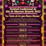En el Pueblo Mágico de El Rosario se realizará el Festival de Día de Muertos Rosario 2022, “La Fiesta de los Nunca Mueren”, del 28 al 31 de octubre. Este sábado realizará una callejoneada en Cacalotán a partir de las 6:00 de la tarde, donde habrá música en vivo y canto, el domingo 30 se hará en Rosario y concluye el lunes 31 de octubre con un concurso de catrinas, exposición de altares y espectáculo artístico en la Laguna del Iguanero a partir de las 6:00 de la tarde.