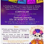 El gobierno local también convoca al Festival Literario Día de Muertos 2022 el 1 de Noviembre, a partir de las 6:00 de la tarde en el patio del Museo Regional.