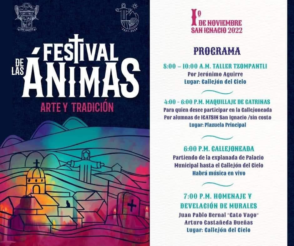 San Ignacio lanza el Festival de las Ánimas que se llevará a cabo el 1 de Noviembre, Día de Todos los Santos, con un programa que incluye talleres, maquillaje de catrinas para quien quiera participar en la callejoneada que inicia a las 6:00 de la tarde.